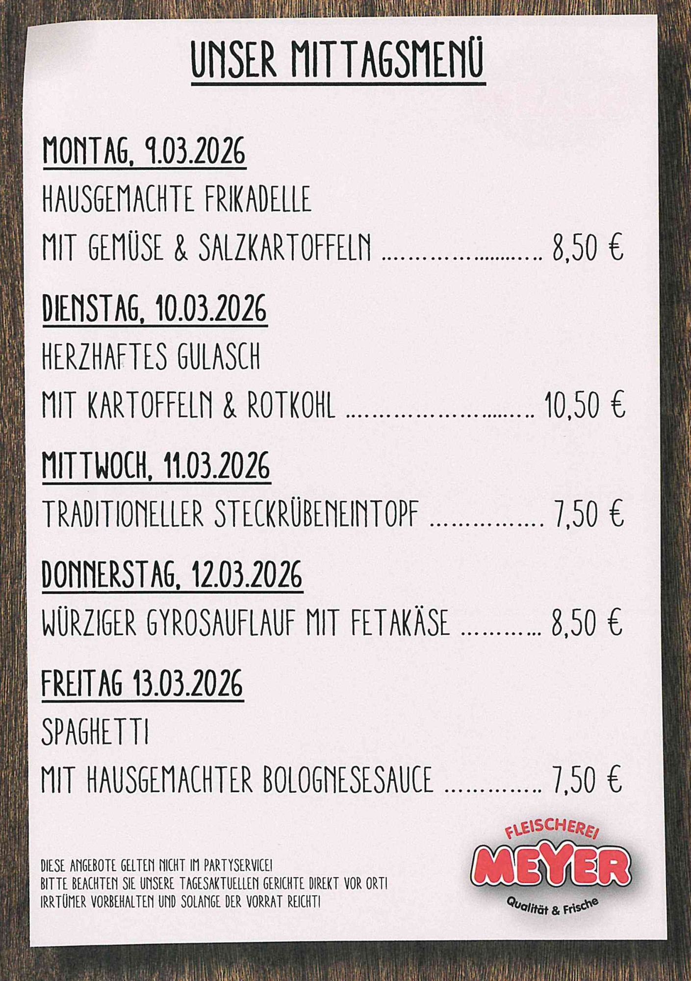 Unser Mittagsmenü & Heiße Theke
